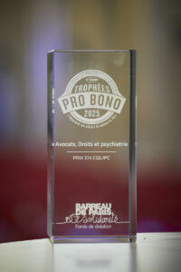 En cette année 2025, notre association a eu l’honneur et le privilège d’être distinguée par le Barreau de PARIS à l’occasion de la remise des trophées Pro bono.